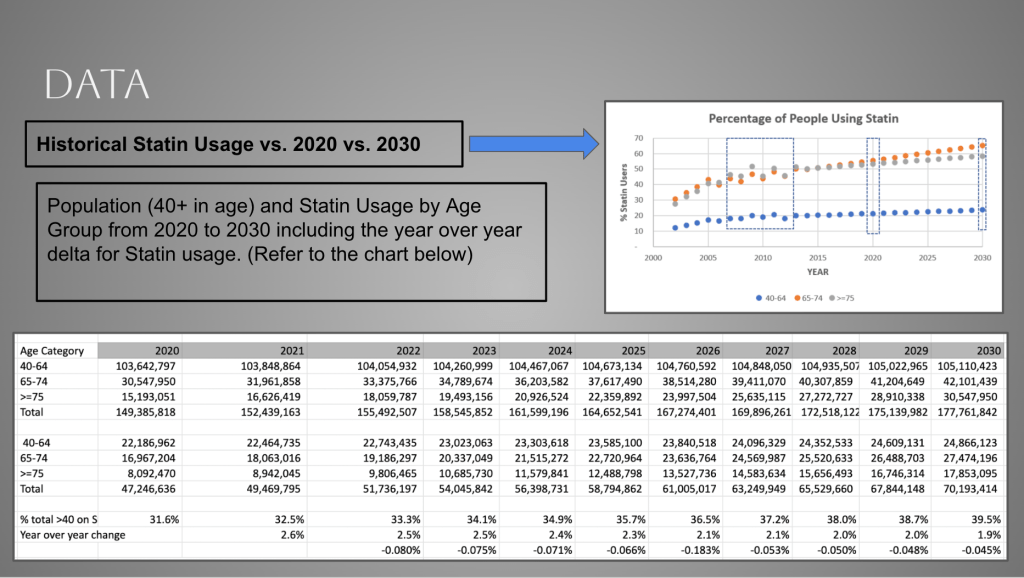 A possible error to account for, however, is that the census does not include deaths or immigration therefore the numbers may not be as accurate. Also, predicting 10 years out can result in skewed data as it’s hard to predict uncontrollable events that can skew the population. For example, the pandemic caused a lot of deaths that the census data did not include. It is also important to include that while predictive data modeling is very useful, it can also be inaccurate because of the reliance on past data which can have some deficiencies. Another issue to note is that recent health trends could be encouraging people to maintain a healthier lifestyle by eating cleaner, working out, and taking care of their bodies. With the trends getting progressively popular, statin usage and heart disease may decrease.